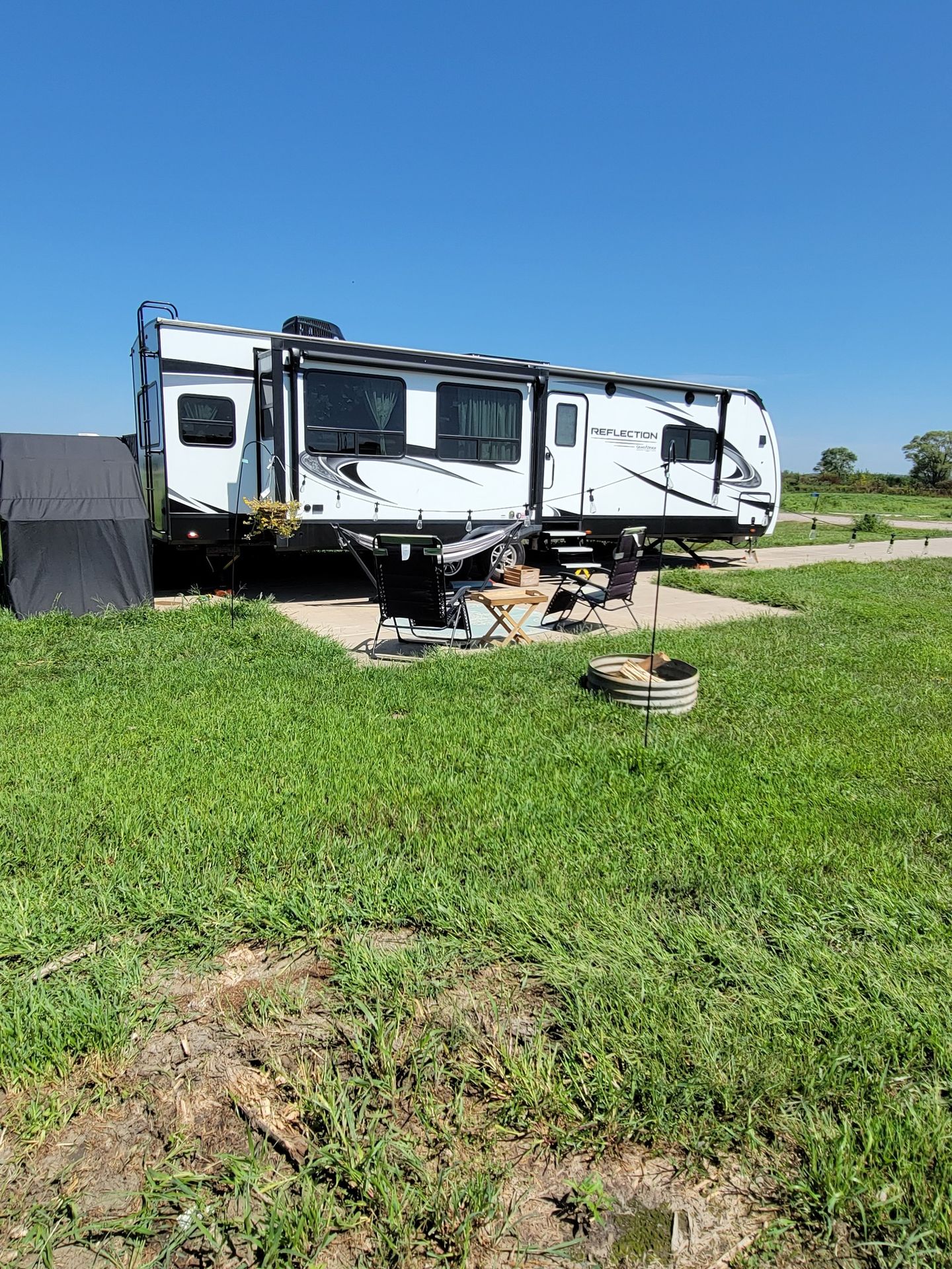 Bring your favorite outdoor furniture to setup your outdoor fun zone. Many of our cement side site include a pad to setup your patio furniture. evening lighting, and a firepit.