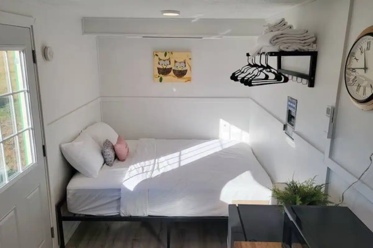 Check out this unique space in a 20 ft shipping container! Queen size bed and full bathroom along with a kitchenette perfect for a weekend or long term stay.